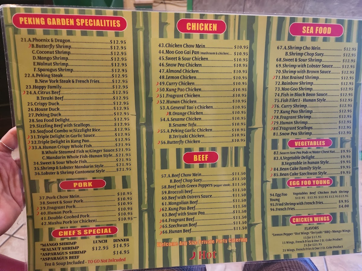 The ambiance may evoke a sense of nostalgia, reminiscent of your favorite childhood eatery, while the generous portions ensure you'll leave satisfied. Come for a casual meal, and enjoy the turnover of flavors and the friendly service Peking Garden is known for.